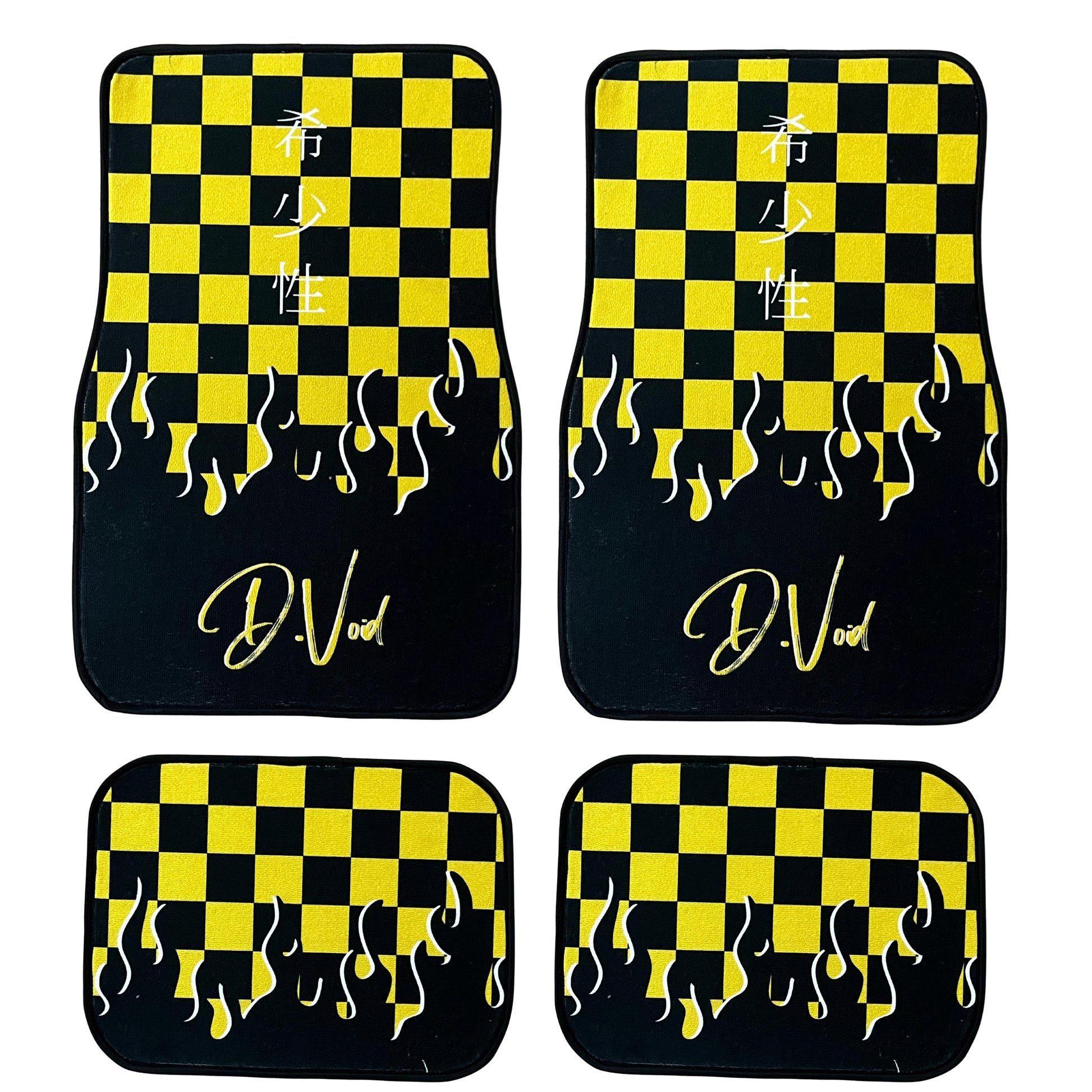 Yellow JDM checkered car mats not only adds to aesthetic value of the car but also protect the carpet flooring from damage and dust.